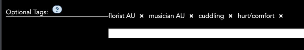 →optional tags: this is a place to put additional tag requests! AUs, mood tags, etc. anything that is not included in the default tagset. matchups are more likely the more common the selected tags are.→offers: offers should be formatted in the same way as requests. this section is used to outline what you are willing to create for your giftee. you can only offer explicit content if you are 18+.