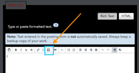 💫 1ST: you will want to make sure the posting box is in "rich text" mode to make things a little simpler. click the picture icon in the toolbar.